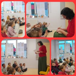 La maman de Nathna Corbizet, Gwendoline, est venue biper les trois classes. A partir des mots des enfants, elle a inventé un poème.
